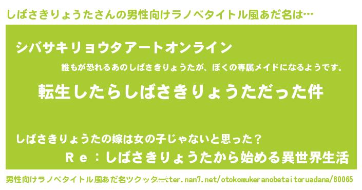| 胡散臭い通販商品みたいなあだ名 | 『モテモテ間違いなし霊験あらたかなお札…その名も「しばさきりょうた」』 |