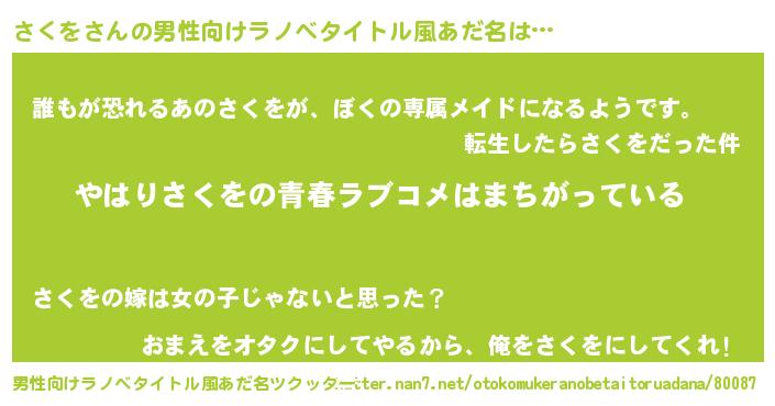 | 女子向けラノベタイトル風あだ名 | 『さくをの雑貨屋さん』 |