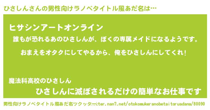 | ファンタジー風あだ名 | 『クインヒット』『ヒサフェル』 |