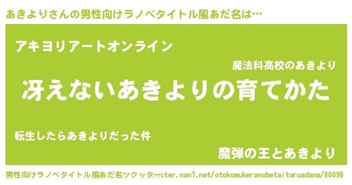 | ヘコむあだ名 | 『あきにゅー』『あきより(震え声)』 |