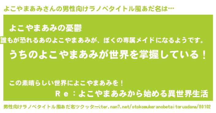| 女子向けラノベタイトル風あだ名 | 『男装よこやまあみの憂鬱な任務』 |