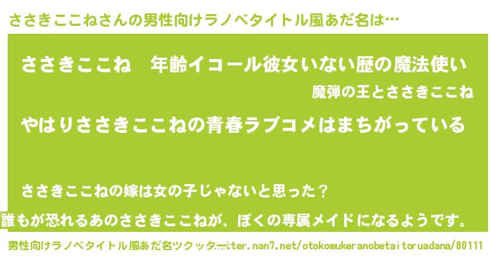 ささきここねさんの男性向けラノベタイトル風あだ名をツクッター!