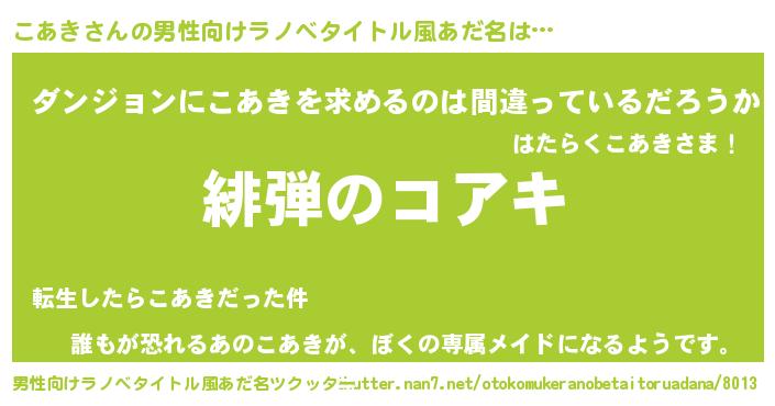 | 女子向けラノベタイトル風あだ名 | 『シンデレラこあき家の靴箱館』 |