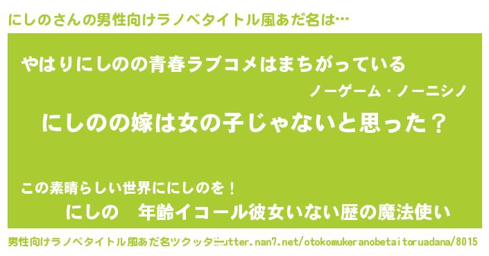 | 胡散臭い通販商品みたいなあだ名 | 『全米が絶賛したサプリメント…その名も「にしの」』 |