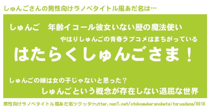 | 胡散臭い通販商品みたいなあだ名 | 『絶対に幸福をもたらす水素水…その名も「しゅんご」』 |