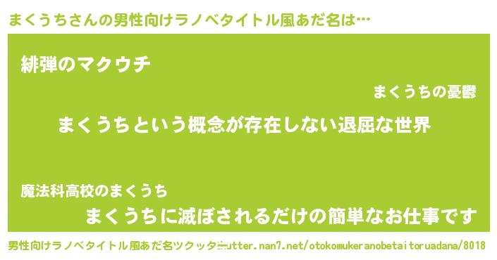 | 女子向けラノベタイトル風あだ名 | 『まくうちの契約王妃』 |