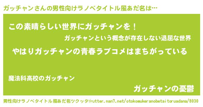 ガッチャンさんの男性向けラノベタイトル風あだ名をツクッター!
