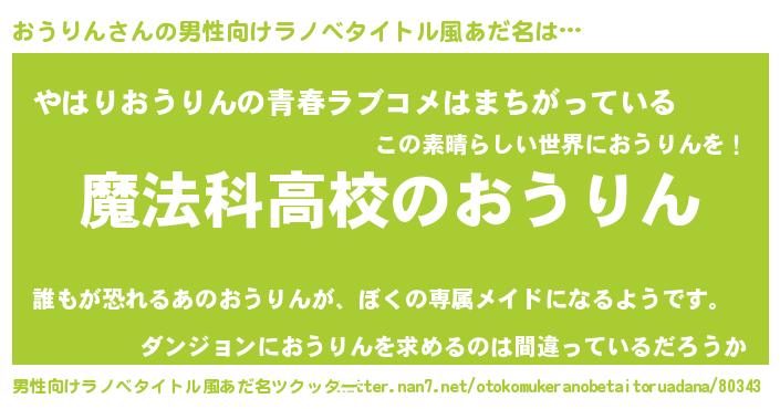 | 女子向けラノベタイトル風あだ名 | 『おうりんアンティーク』 |