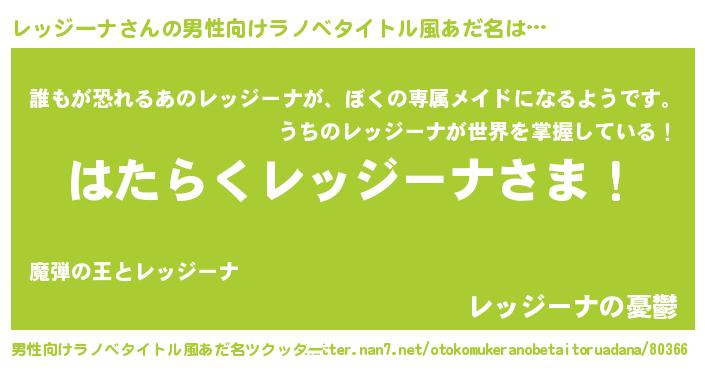 | 意味不明あだ名 | 『永久保存レッジーナ』『自称レッジーナ』 |