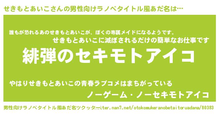 | ヘコむあだ名 | 『せきもとあいこ(笑)』『レバニラ』 |