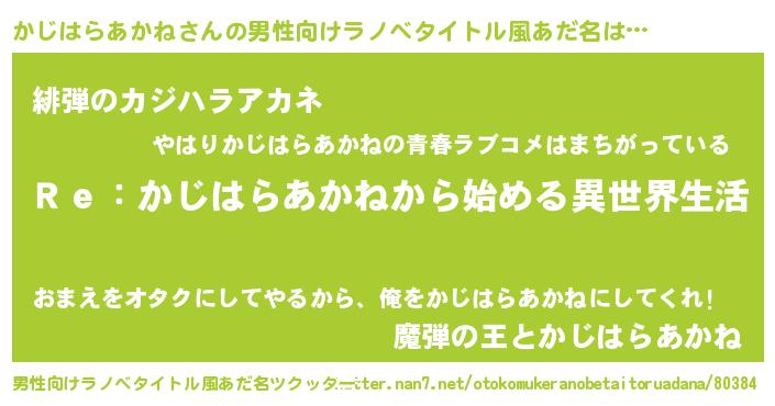 | ヒーロー風カッコイイあだ名 | 『究極戦士カジハラアカネ』 |