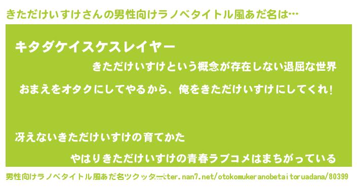 | 女子向けラノベタイトル風あだ名 | 『きただけいすけ恋絵巻』 |