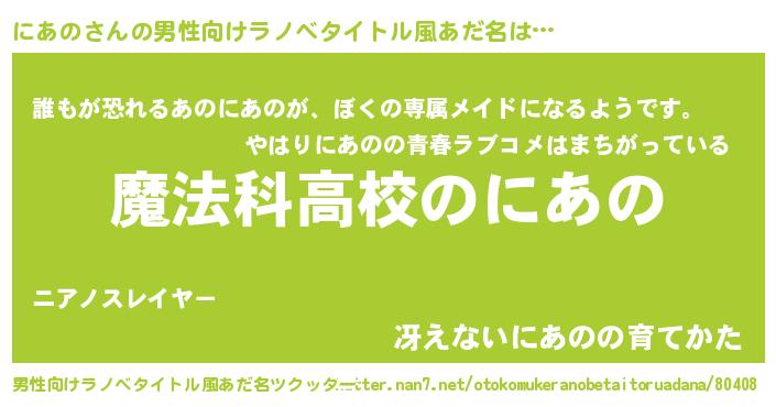 | 意味不明あだ名 | 『自称にあの』『永久保存にあの』 |