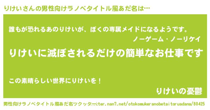 | 胡散臭い通販商品みたいなあだ名 | 『来世でも幸せになれる健康食品…その名も「りけい」』 |