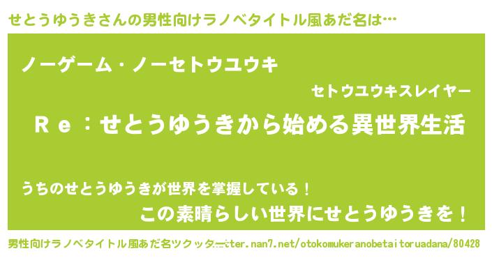 | 女子向けラノベタイトル風あだ名 | 『闇のせとうゆうき』 |