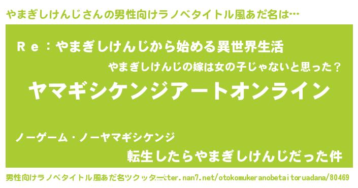 | 女子向けラノベタイトル風あだ名 | 『誰かこのやまぎしけんじを説明してください! ~契約から始まるウェディング~』 |