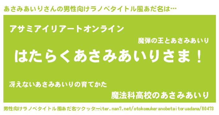 | 欧米人風あだ名 | 『アンジェラ・あさみあいり』 |