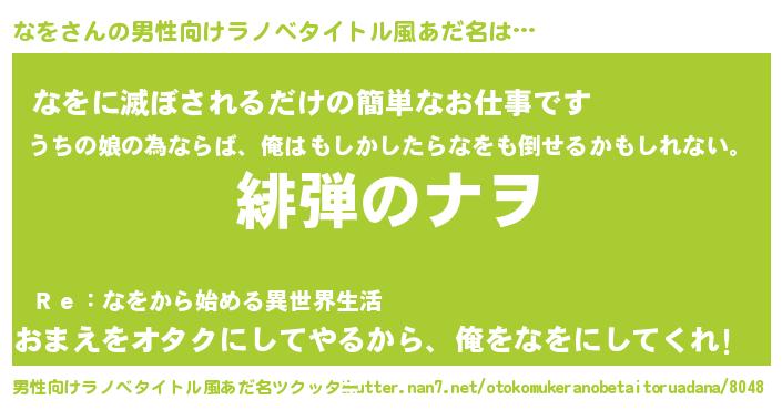 なをさんの男性向けラノベタイトル風あだ名をツクッター!