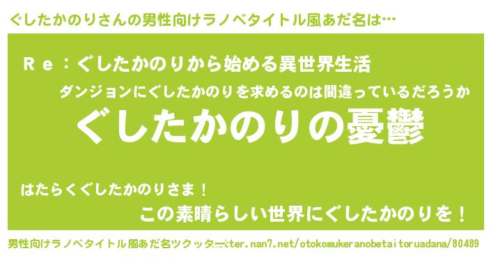 | 胡散臭い通販商品みたいなあだ名 | 『必ず成功するブレスレット…その名も「ぐしたかのり」』 |