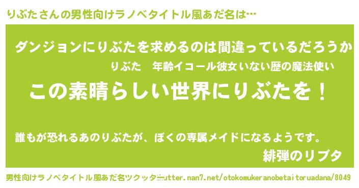 | 胡散臭い通販商品みたいなあだ名 | 『世界中を虜にした世界で10本だけ現存している希少なブランデー…その名も「りぶた」』 |