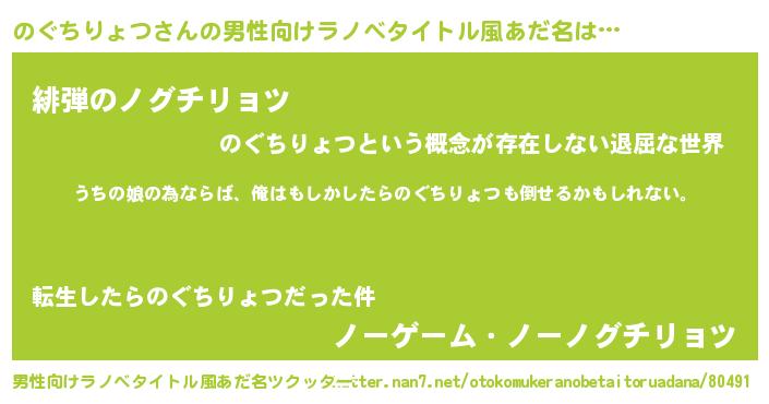 | 女子向けラノベタイトル風あだ名 | 『のぐちりょつの婚約者』 |