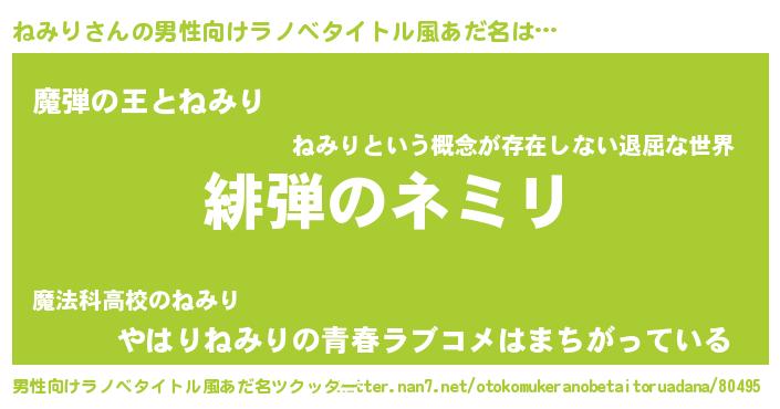 | 意味不明あだ名 | 『住所不定無職ねみり(50歳)』『自称ねみり』 |