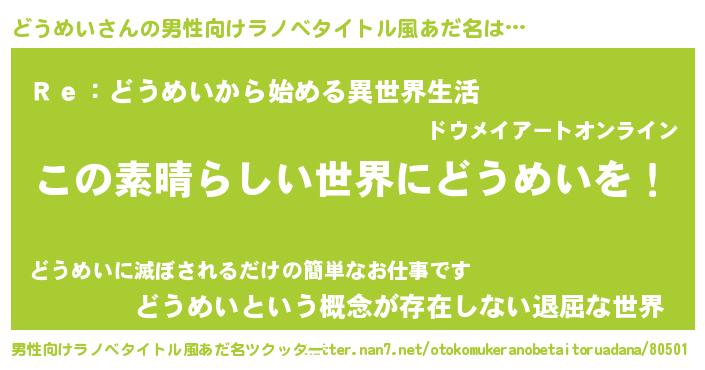 | ヒーロー風カッコイイあだ名 | 『仮面ドウダー』『最強戦士ドウメイ』 |