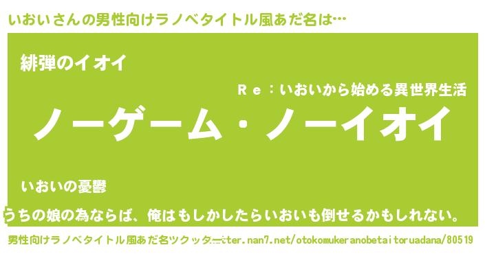 | 女子向けラノベタイトル風あだ名 | 『死神いおいの再婚』『いおいの婚約者』 |