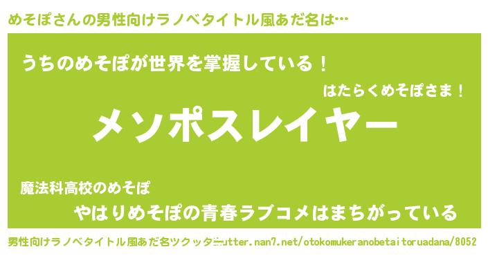 | 胡散臭い通販商品みたいなあだ名 | 『幸せが訪れる高級そうな壺…その名も「めそぽ」』 |