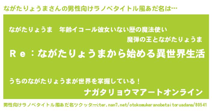 | 女子向けラノベタイトル風あだ名 | 『闇のながたりょうま』 |