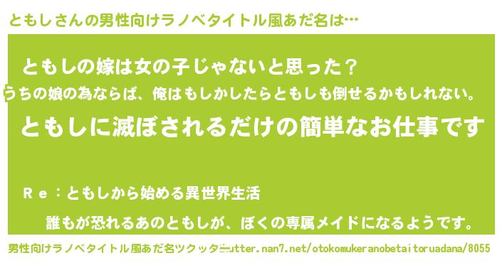 | 胡散臭い通販商品みたいなあだ名 | 『全米が絶賛したサプリメント…その名も「ともし」』 |