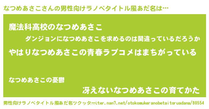 | ファンタジー風あだ名 | 『エターナルナツメアサコー』 |