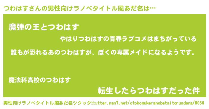 | 意味不明あだ名 | 『永久保存つわはす』『自称つわはす』 |