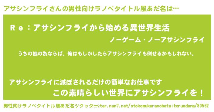 | 女子向けラノベタイトル風あだ名 | 『アサシンフライの婚約者』 |