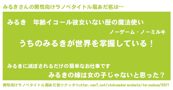 | ヒーロー風カッコイイあだ名 | 『天弓騎士ミル』『慈愛の使者みるき』 |