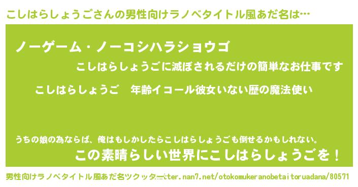| 肩書あだ名 | 『こしはらしょうご上級大将』 |