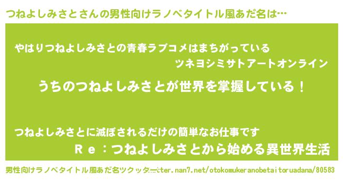 | 胡散臭い通販商品みたいなあだ名 | 『運命の人と巡り会える高級そうな壺…その名も「つねよしみさと」』 |