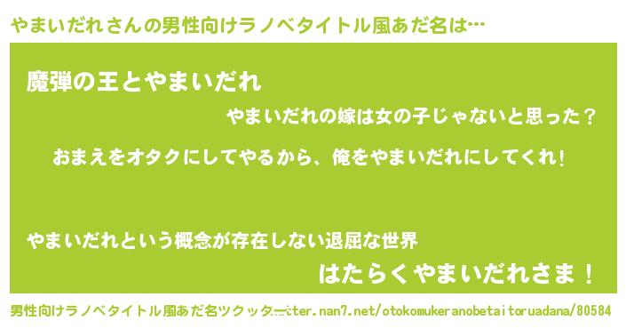 | 女子向けラノベタイトル風あだ名 | 『やまいだれ夫妻のなれそめ』 |