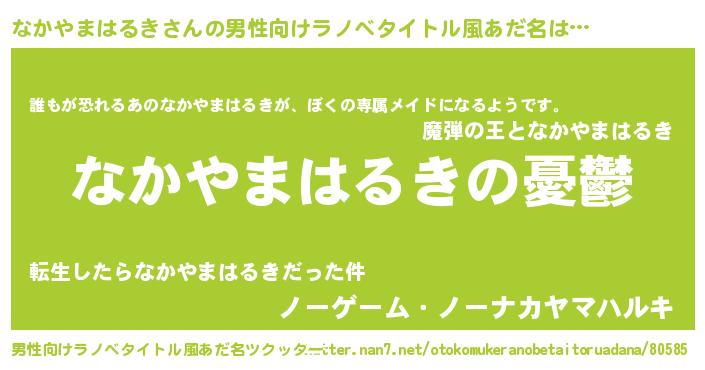 | 女子向けラノベタイトル風あだ名 | 『(仮)なかやまはるきのやんごとなき事情』 |