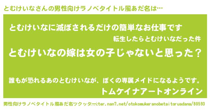| 女子向けラノベタイトル風あだ名 | 『とむけいな様がみてる』 |