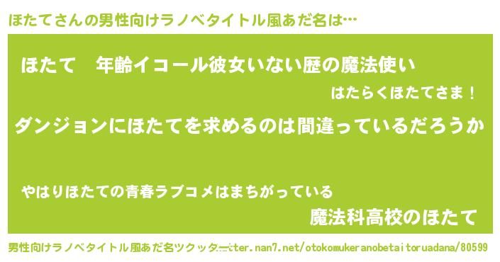 | 女子向けラノベタイトル風あだ名 | 『ほたては平凡を望む』 |