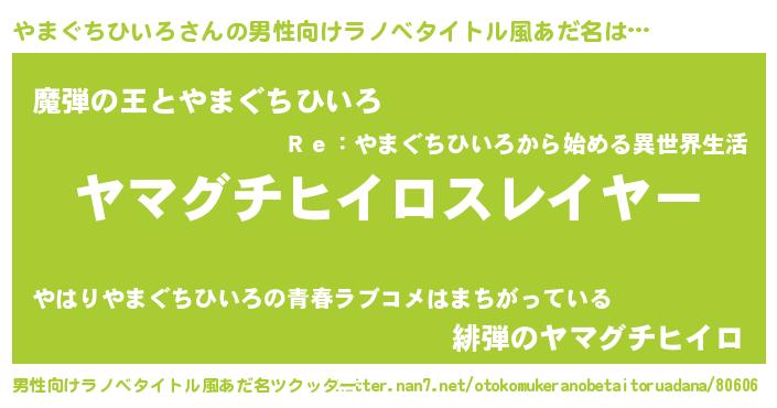 | ヒーロー風カッコイイあだ名 | 『仮面ヤマダー』『ネオヤマグチヒイロ』 |