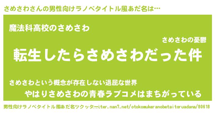 | 意味不明あだ名 | 『たけのこ科さめさわ属』『自称さめさわ』 |