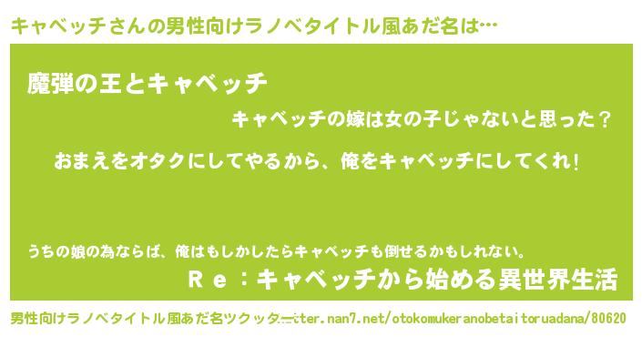 | 胡散臭い通販商品みたいなあだ名 | 『100人中100人が認めたマグネット磁石…その名も「キャベッチ」』 |