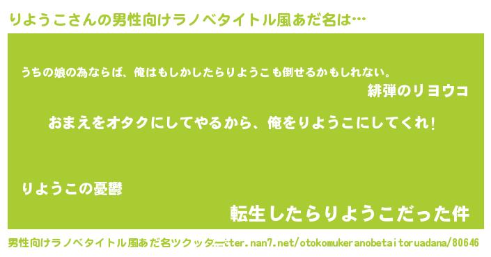 | ヘコむあだ名 | 『豆乳』『りよにー』『りよを』 |