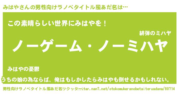 | ヒーロー風カッコイイあだ名 | 『慈愛の使者みはや』『仮面ミハダー』 |