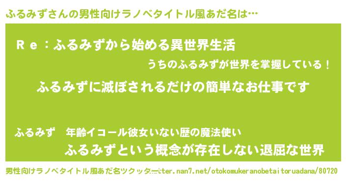 | 意味不明あだ名 | 『自称ふるみず』『永久保存ふるみず』 |