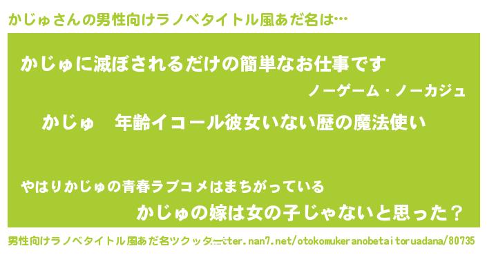 | ヒーロー風カッコイイあだ名 | 『炎刃騎士カジ』『慈愛の使者かじゅ』 |