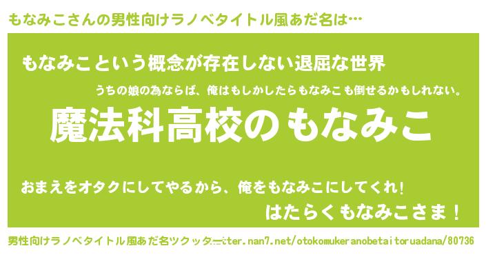 | 意味不明あだ名 | 『自称もなみこ』『永久保存もなみこ』 |
