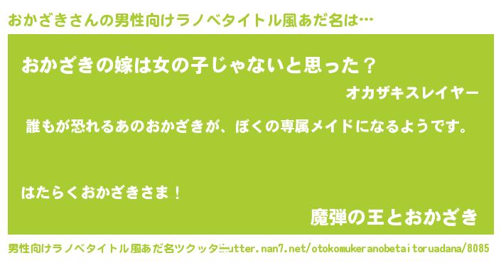 | 女子向けラノベタイトル風あだ名 | 『異世界でカフェおかざきを開店しました。』 |
